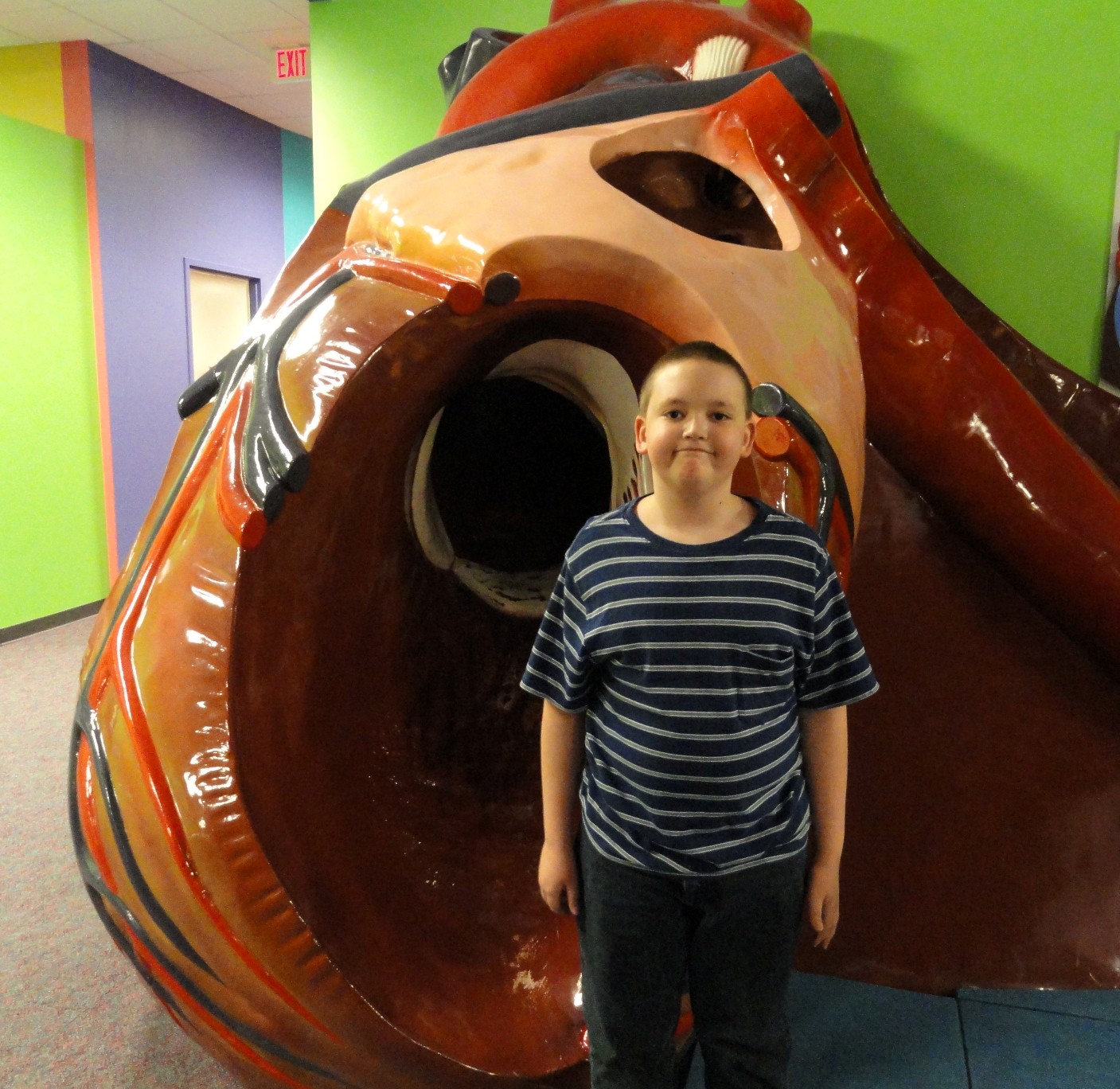 Ben standing by the human heart exhibit/slide: