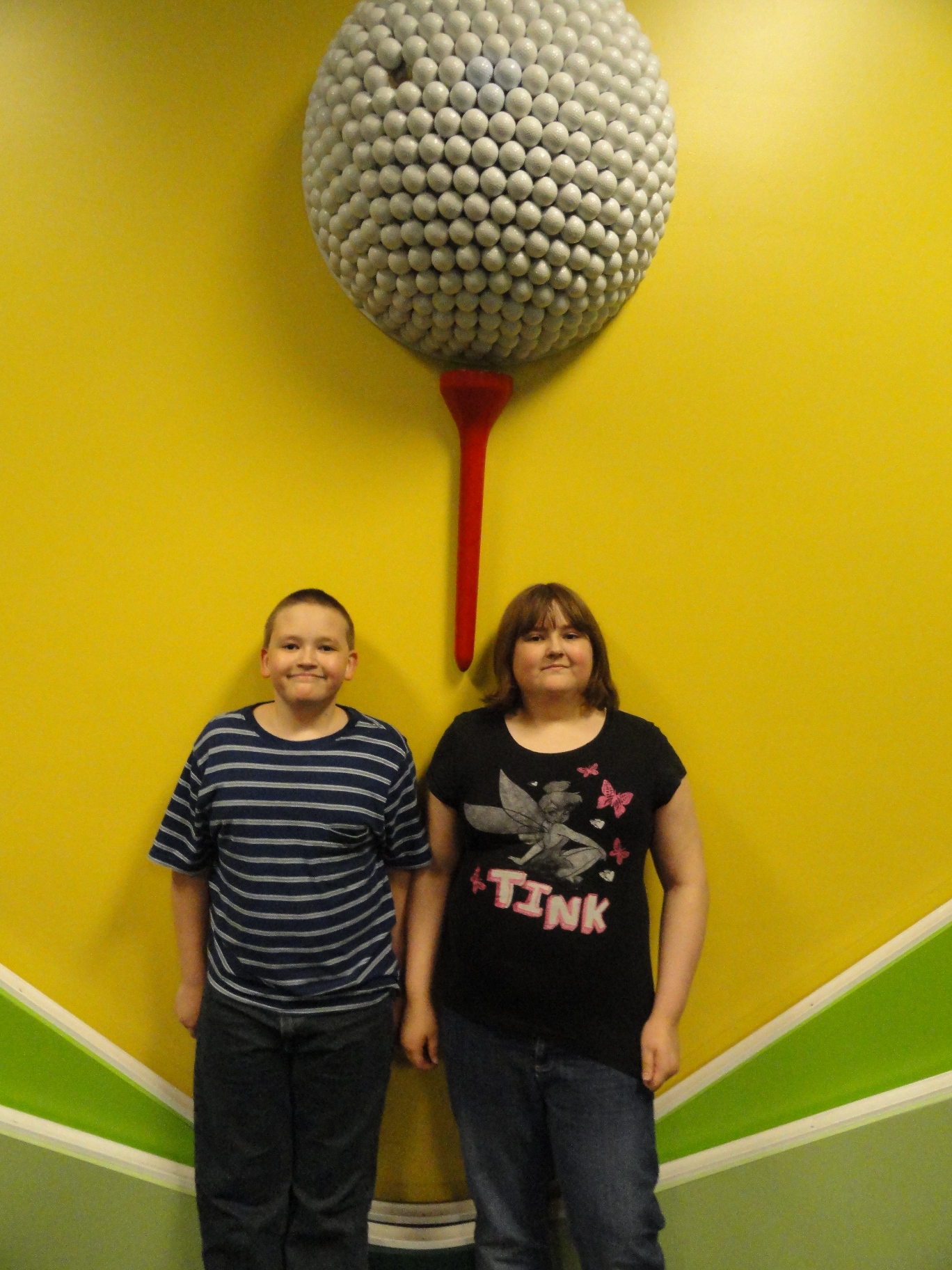 Catie & Ben standing in the golf/physics area. We had to take a picture of them standing underneath the giant golf ball, aka Epcot.